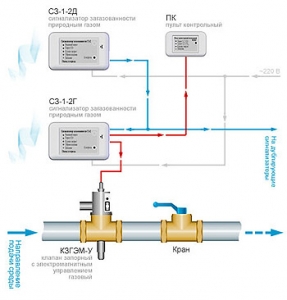 - перекрытия трубопровода подачи газа клапаном запорным газовым с электромагнитным приводом, унифицированным КЗЭУГ, КЗГЭМ-У при аварийной ситуации.